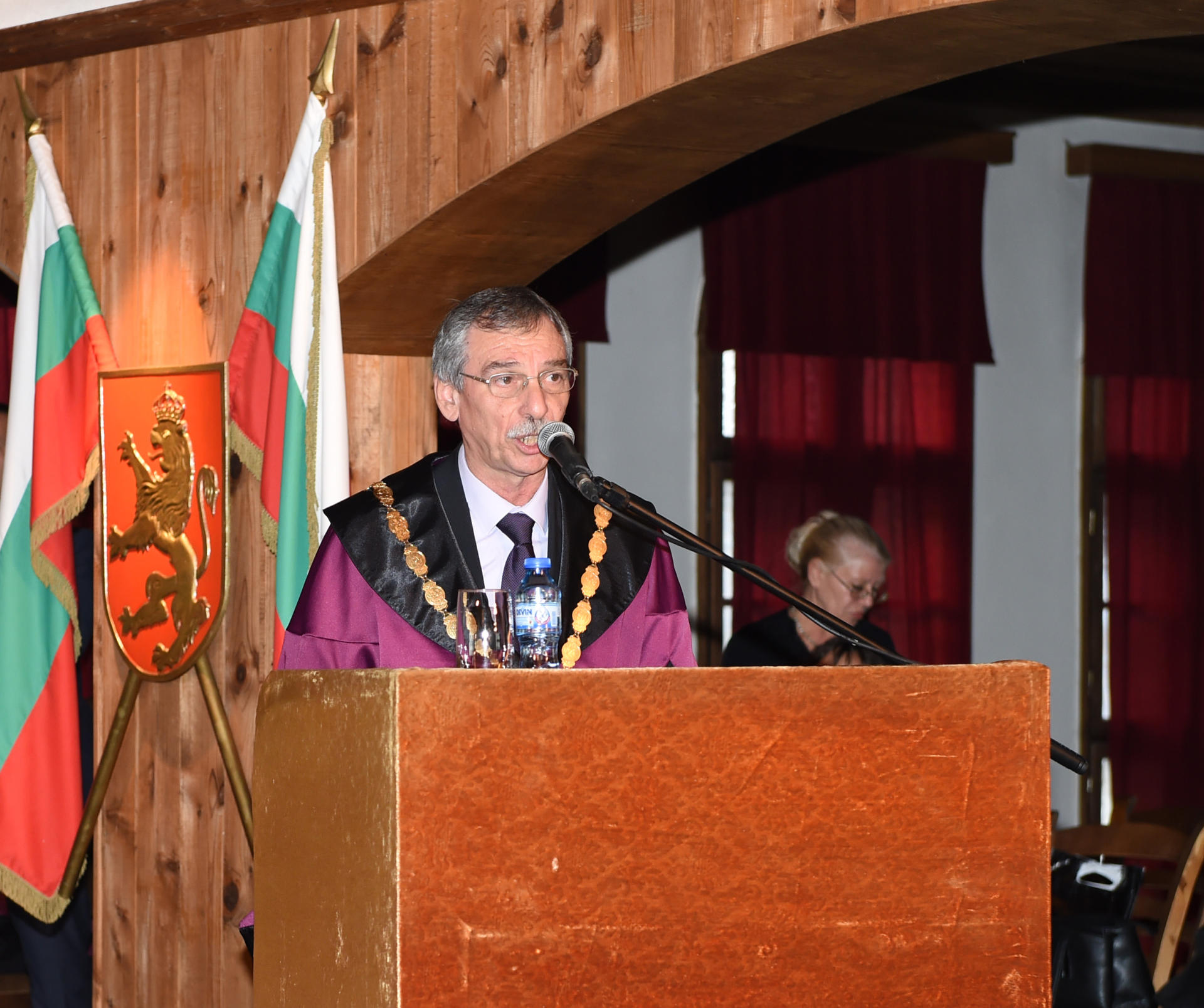 İcazə verin, mənim müqəddəs Kiril və Mefodi adına Veliko Tırnovo Universitetinin fəxri doktoru adı ilə təltif edilməyimə görə sizə dərin təşəkkürümü bildirim. Bu, mənim üçün həqiqətən böyük şərəfdir. Mən müəllimlər ailəsində, bütün həyatlarını elmə həsr etmiş insanların ailəsində böyümüşəm. Buna görə də həyatlarını gənc nəslə elm, bilik öyrətmək işinə həsr etmiş insanlara çox dərin hörmət bəsləyirəm. Universitetin bütün professor-müəllim heyətinə mənim dərin təşəkkürümü çatdırın.