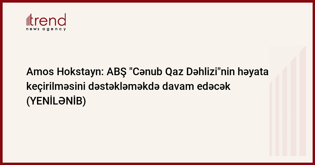 Trend-in məlumatına görə, bunu Bakıda səfərdə olan ABŞ Dövlət Departamentinin beynəlxalq enerji məsələləri üzrə xüsusi elçisi və əlaqələndiricisi Amos Hokstayn mətbuat konfransında deyib.