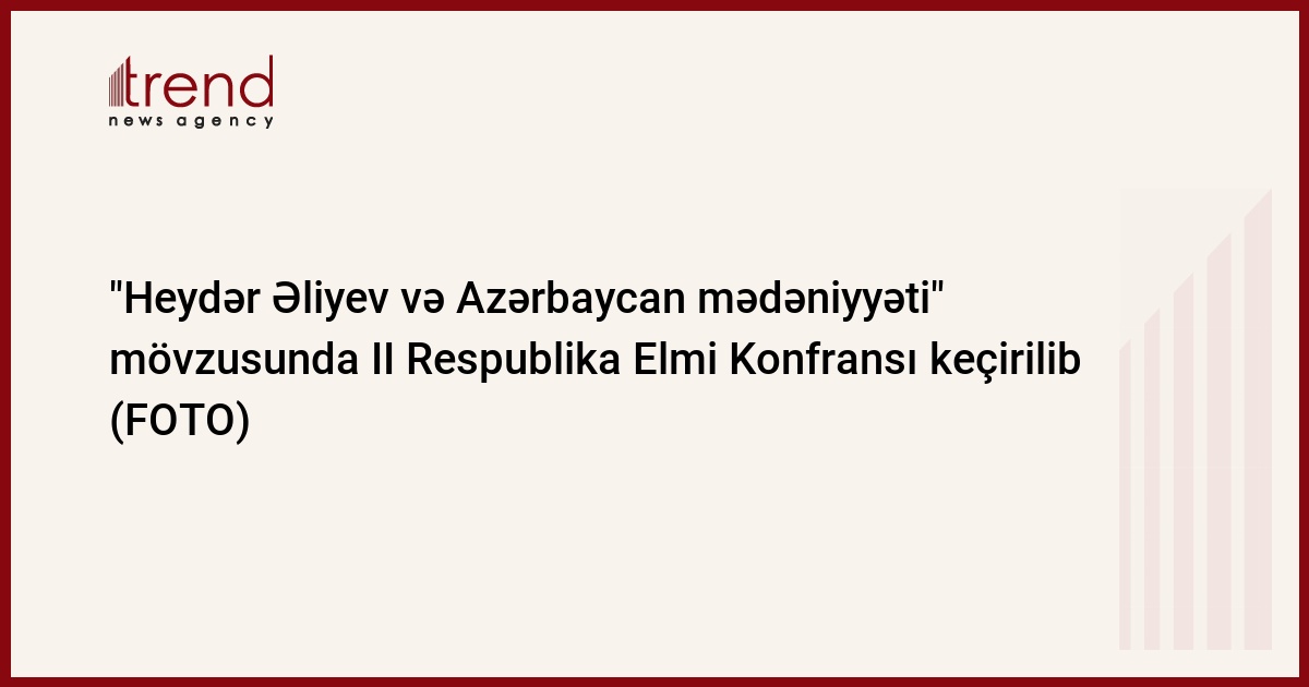 Bu gün AMEA Nizami adına Ədəbiyyat İnstitutu və Azərbaycan Respublikası Mədəniyyət və Turizm Nazirliyinin Mədəniyyətşünaslıq üzrə Elmi Metodiki Mərkəzinin birgə təşkilatçılığı ilə ulu öndər Heydər Əliyevin anadan olmasının 94-cü ildönümünə həsr olunmuş “Heydər Əliyev və Azərbaycan mədəniyyəti” mövzusunda II Respublika Elmi Konfransı keçirilib.