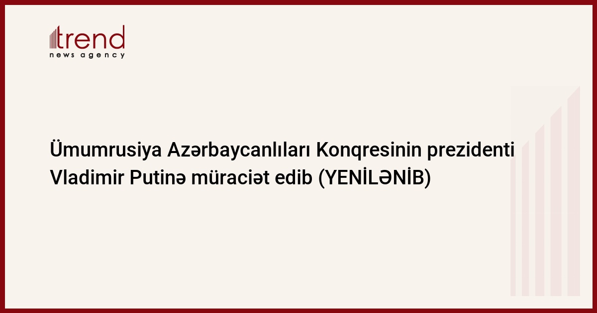 Ümumrusiya Azərbaycanlıları Konqresinin (ÜAK) prezidenti Fazil Qurbanov qurum ətrafında yaranmış məsələyə diqqətlə yanaşması ilə bağlı Rusiya Prezidenti Vladimir Putinə müraciət edib.