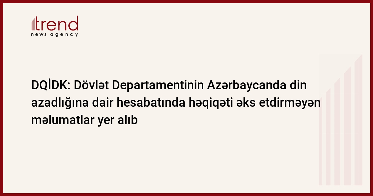 S.Heydərov qeyd edib ki, ABŞ Dövlət Departamentinin son günlərdə Azərbaycanda din azadlığına dair açıqladığı illik hesabatda dini durumdakı pozitiv məqamları əks etdirən bəzi məlumatların yer almasından məmnunuq. Lakin bununla yanaşı, hesabatda həqiqəti əks etdirməyən bir sıra məlumatlar da yer alıb. Sədr müavini real faktlara əsaslanmayan həmin məlumatlar ətrafında Dövlət Komitəsinini rəhbərliyi ilə ABŞ səfirliyi arasında dəfələrlə müzakirələrin aparıldığı, bu hallara aydınlıq gətirilməsinə baxmayaraq, onların yenidən hesabatda yer almasından təəssüfləndiyini diqqətə çatdırıb.
