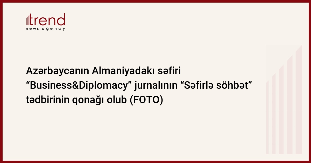 Azərbaycanın Almaniyadakı fövqəladə və səlahiyyətli səfiri Ramin Həsənov cari ilin 5 sentyabr tarixində “Business & Diplomacy” jurnalının “Səfirlə söhbət” (“Botschafter-Gespärch”) silsiləsindən növbəti tədbirinin qonağı olub.