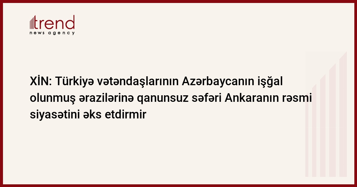 Türkiyə vətəndaşlarının Azərbaycanın işğal olunmuş ərazilərinə qanunsuz səfəri Ankaranın rəsmi siyasətini əks etdirmir. Trend-in məlumatına görə, bunu Türkiyə Xarici İşlər Nazirliyinin rəsmi nümayəndəsi Hüseyn Müftüoğlu deyib.
