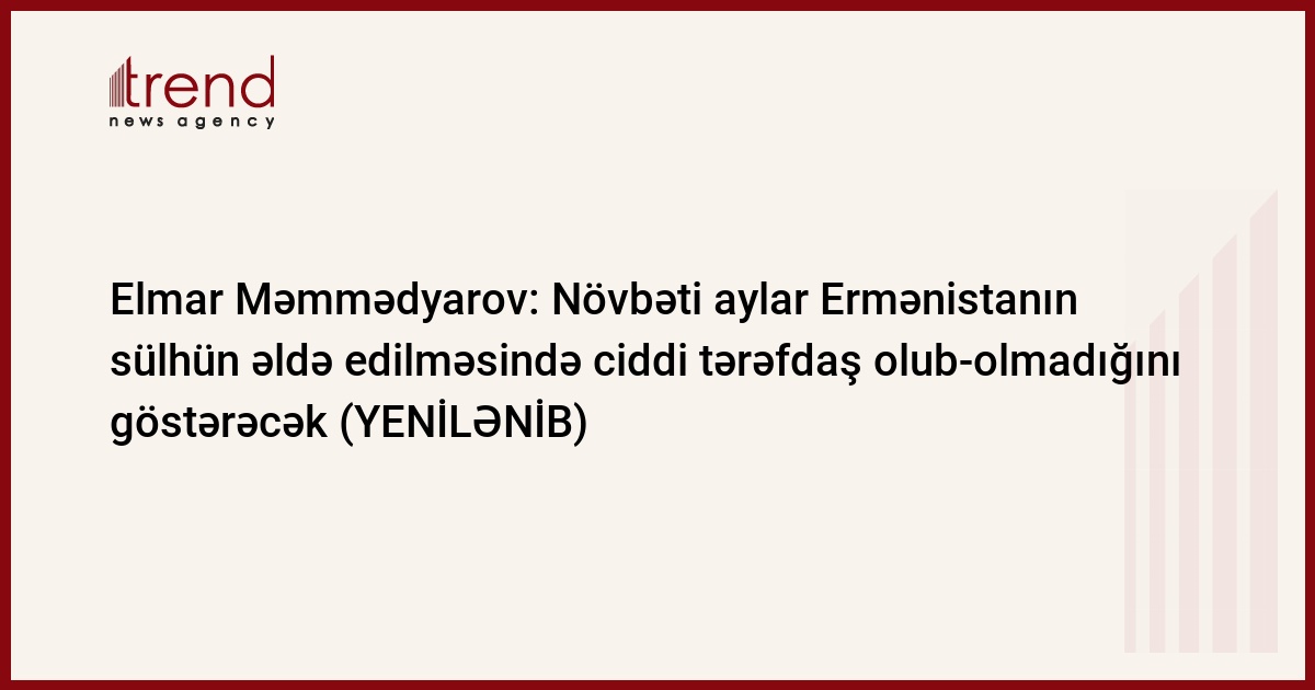 Növbəti aylar Ermənistanın sülhün əldə edilməsində ciddi tərəfdaş olub-olmadığını, münaqişənin həllində irəliləyişin əldə edilməsi və onun həlli üçün substantiv danışıqlarda konstruktiv şəkildə iştirak edib-etməyəcəyini və yaxud əlavə qeyri-sabitlik və münaqişəyə doğru yuvarlanacağımızı nümayiş edtirəcəkdir.