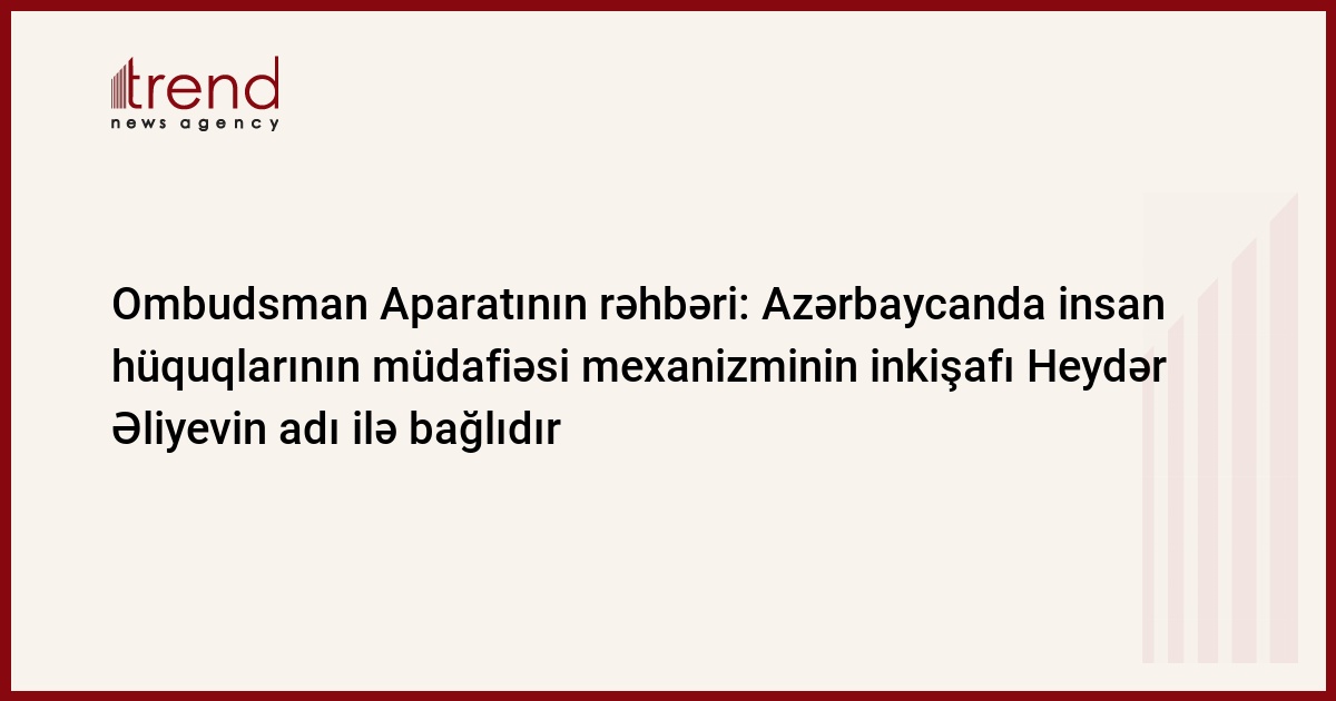 Onun sözlərinə görə, ümummilli lider Heydər Əliyevin müəllifi olduğu və insan hüquqlarının və azadlıqlarının təmin olunması istiqamətində qəbul edilmiş normativ sənədlər sırasında 22 fevral 1998-ci il tarixli “İnsan və vətəndaş hüquqlarının və azadlıqlarının təmin edilməsi sahəsində tədbirlər haqqında” Fərmanı və 1998-ci il 18 iyun tarixli Sərəncamı ilə təsdiq edilmiş “İnsan hüquqlarının müdafiəsinə dair Dövlət Proqramı”nı xüsusilə qeyd etmək lazımdır. Bu sənədlərdə insan hüquqlarının müdafiəsi sahəsində mühüm tədbirlərin həyata keçirilməsi, o cümlədən Azərbaycan Respublikasının İnsan hüquqları üzrə səlahiyyətli müvəkkili təsisatının yaradılması kimi vəzifələr nəzərdə tutulub: “Bu gün artıq qətiyyətlə demək olar ki, aparılmış uzaqgörən siyasət nəticəsində bu məsələlərin hər biri öz uğurlu həllini tapıb. Heydər Əliyev yalnız qanunlar qəbul edilməsinə deyil, onların həyata keçirilməsinə də xüsusi diqqətlə yanaşırdı. Məhz ümummilli liderin rəhbərliyi ilə bu sahədə aparılan hüquqi islahatların məntiqi nəticəsi kimi 28 dekabr 2001-ci il tarixdə "Azərbaycan Respublikasının İnsan Hüquqları üzrə Müvəkkili (Ombudsman) haqqında" Konstitusiya Qanunu qəbul edilib, Ombudsman təsisatının yaradılması və fəaliyyət göstərməsi üçün maddi və hüquqi baza formalaşdırılıb, 2 iyul 2002-ci il tarixdə Azərbaycanın ilk Ombudsmanı seçilib və beləliklə də, ulu öndərin xeyir-duası ilə respublikamızda da digər inkişaf etmiş demokratik ölkələrdə olduğu kimi ombudsman institutu təsis edilib”.