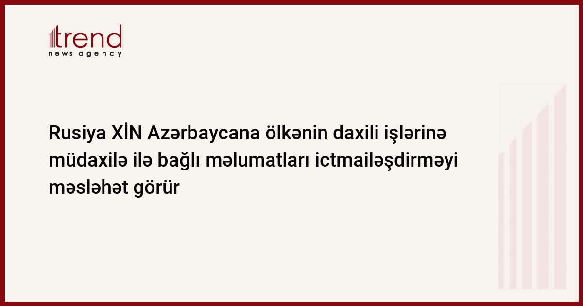 Rusiya Xarici İşlər Nazirliyi Azərbaycana ölkənin daxili işlərinə müdaxilə ilə bağlı məlumatları bu cür hallara reaksiya verməli olan beynəlxalq strukturlara göndərməyi məsləhət görür.