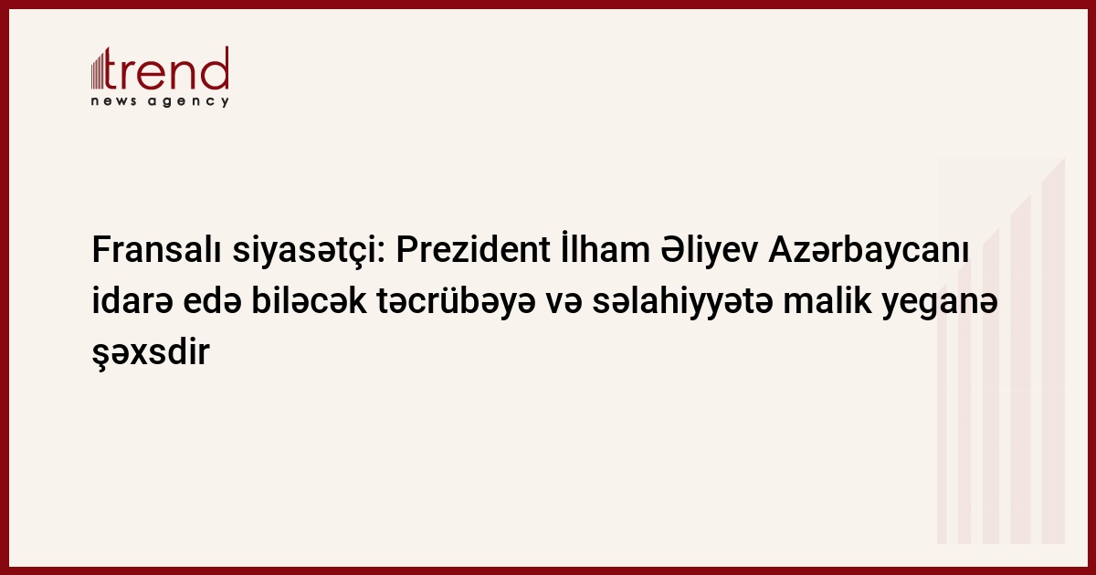 Bu barədə Trend-ə fransalı siyasətçi, Fransa Milli Məclisinin sabiq deputatı, Fransada Azərbaycanın Dostları Assosiasiyasının prezidenti Jan-Fransua Mansel deyib.