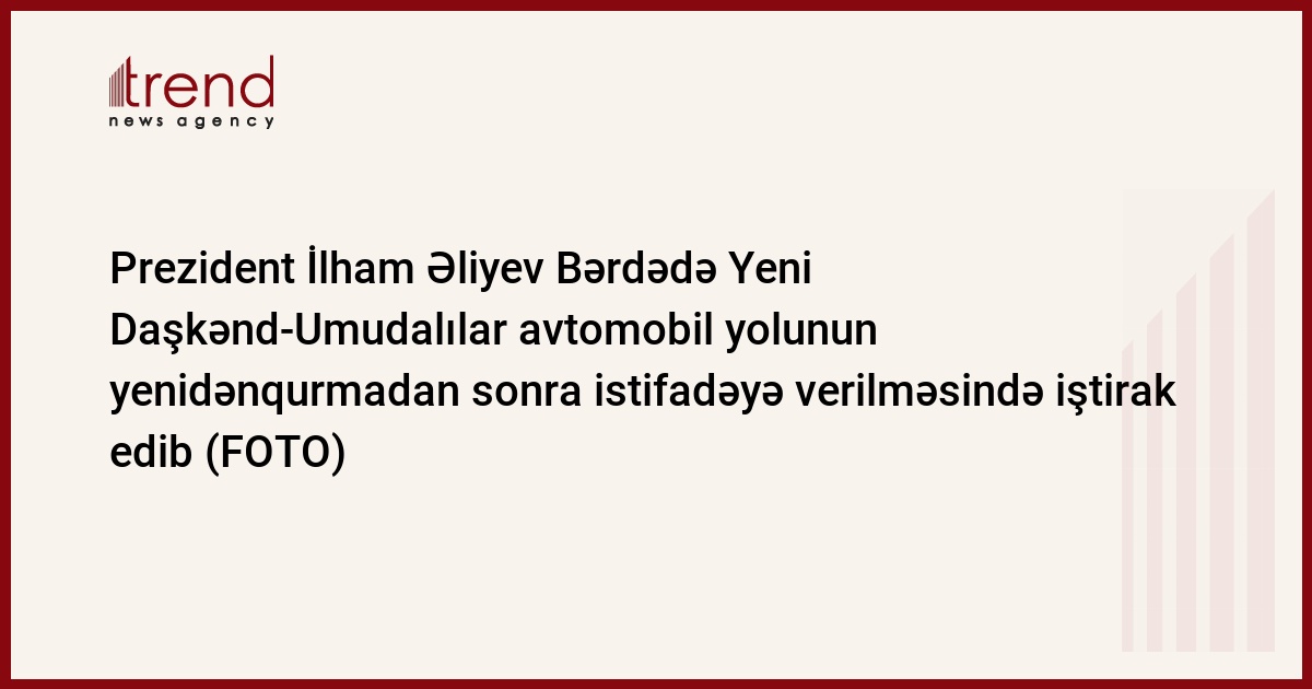 Martın 25-də Azərbaycan Prezidenti İlham Əliyev Bərdə rayonuna səfəri çərçivəsində Yeni Daşkənd-Umudalılar avtomobil yolunun yenidənqurmadan sonra açılışında iştirak edib.