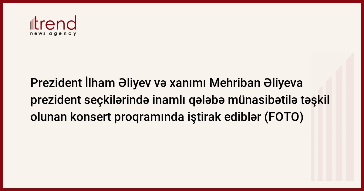 Aprelin 11-də Azərbaycanda keçirilən prezident seçkilərində İlham Əliyevin inamlı qələbə qazanması münasibətilə Heydər Əliyev Mərkəzinin qarşısındakı parkda möhtəşəm konsert proqramı təşkil olunub.