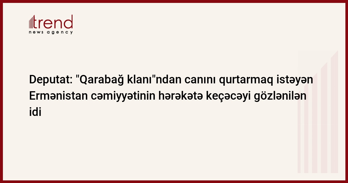 Millət vəkili bildirib ki, S.Sarkisyanın rəhbərlik etdiyi "Qarabağ klanı"ndan canını qurtarmaq istəyən Ermənistan cəmiyyətinin hərəkətə keçəcəyi gözlənilirdi: