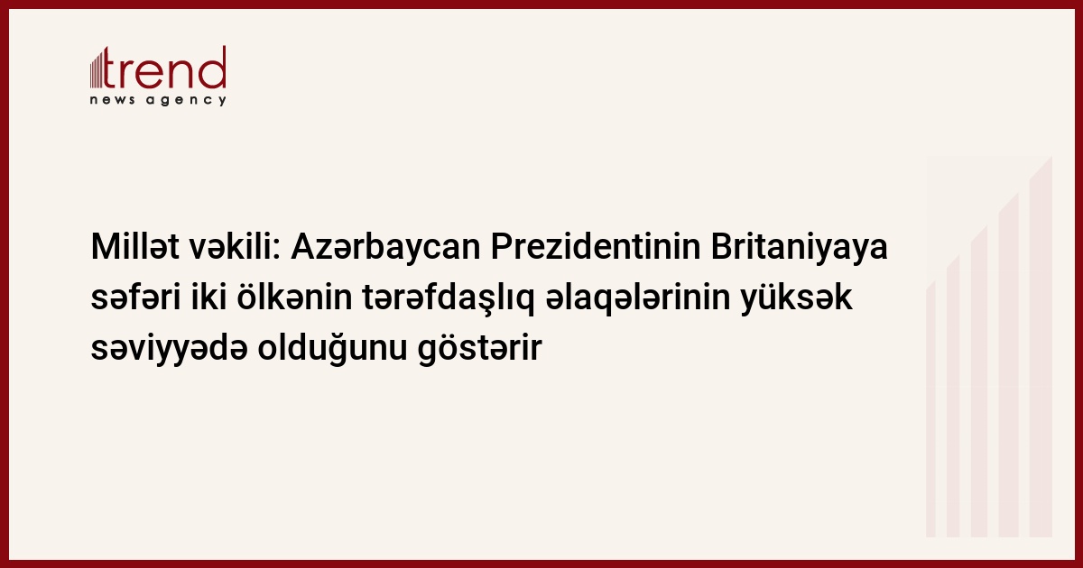 "Bu səfər həm də bəzilərinin Azərbaycanla bağlı beynəlxalq aləmdə mənfi fikir səsləndirməsinə cavab oldu. Həmin qüvvələr iddia edirdilər ki, guya bu seçkilərdən sonra böyük dövlətlər Azərbaycanı tanımayacaq, prerzident seçkilərinə soyuq yanaşacaq və sair. Amma Azərbaycan Prezidentinin Britaniyaya səfərə dəvət olunması, keçirilən görüşlər, bundan başqa, aparıcı ölkələrin liderlərinin - Angela Merkelin, Emmanuel Makronun Prezident İlham Əliyevə xüsusi təbriki onu göstərdi ki, Azərbaycanın böyük dövlətlər üçün dəyəri, əhəmiyyəti var. Bu səfəri mən bir növ fövqəladə hadisə kimi qiymətləndirirəm. Çünki bu, Azərbaycan üçün çox əhəmiyyətli bir səfərdir. Bu səfər Azərbaycanın beynəlxalq aləmdəki nüfuzunu bir daha nümayiş etdirdi. Cənab Prezident bir daha dünyaya sübut etdi ki, Azərbaycanla düşmənçilik edən dövlətlərin cəhdləri əbəsdir".