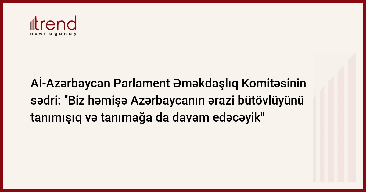 “Biz həmişə Azərbaycanın ərazi bütövlüyünü tanımışıq və tanımağa da davam edəcəyik”.