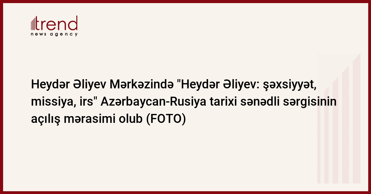Mayın 10-da Heydər Əliyev Mərkəzində “Heydər Əliyev: şəxsiyyət, missiya, irs” Azərbaycan-Rusiya tarixi sənədli sərgisinin açılış mərasimi olub.
