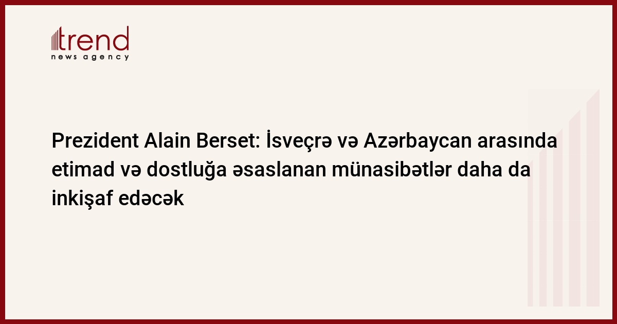İsveçrə Konfederasiyasının Prezidenti Alain Berset Azərbaycan Respublikasının Prezidenti İlham Əliyevə təbrik məktubu ünvanlayıb.