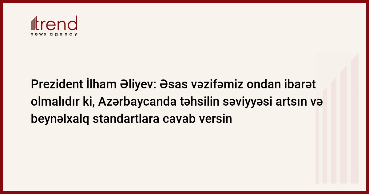 "Əsas vəzifəmiz ondan ibarət olmalıdır ki, Azərbaycanda təhsilin səviyyəsi artsın və beynəlxalq standartlara cavab versin".