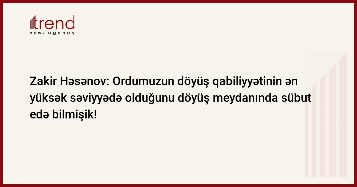 Z.Həsənov vurğulayıb ki, keçirilən genişmiqyaslı taktiki təlimlərdə şəxsi heyət öz peşəkarlığını, yüksək döyüş qabiliyyətini nümayiş etdirir, Vətən qarşısında vəzifə borcunu şərəf və vicdanla yerinə yetirir. Xalq öz ordusuna inanır, gücünə güvənir. Şəhid ailələri, müharibə veteranları və əlilləri, eləcə də hər bir hərbi qulluqçu ölkə rəhbərliyinin diqqət və qayğısı ilə əhatə olunub: