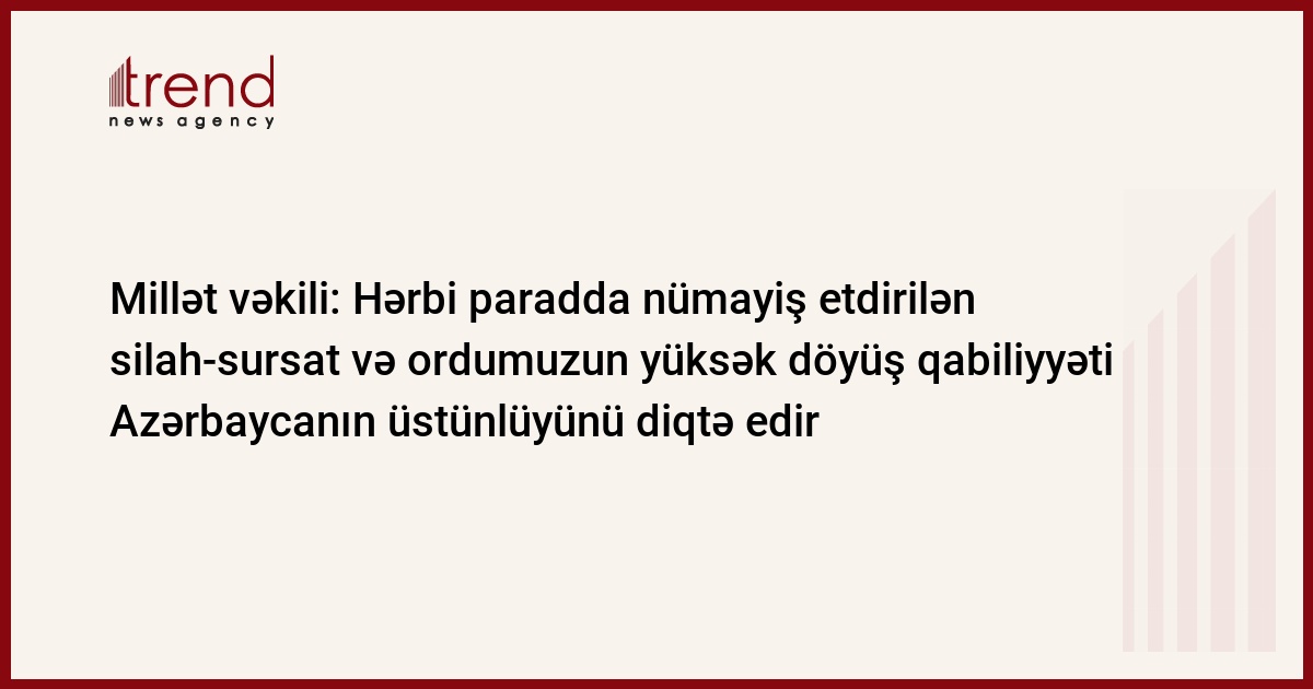 Millət vəkilinin sözlərinə görə, hər bir azərbaycanlı dərk edir ki, hazırki mürəkkəb tarixi şəraitdə ölkəmizin ərazi bütövlüyünün bərpası məsələsində arxalana biləcəyimiz yeganə güc məhz milli ordumuzdur: "Ali Baş Komandanımız, Prezident İlham Əliyev öz çıxışında bildirdi ki, Azərbaycan işğalla heç vaxt barışmayacaq. Azərbaycan öz ərazi bütövlüyünü bərpa etməlidir və bərpa edəcək. Bunun üçün güclü ordu yaratmalı idik. Bu gün tam əminliklə deyə bilərəm ki, buna nail ola bilmişik. Hazırda Ordumuzun belə güclü olması, ən müasir silahlarla təchiz edilməsi, döyüş tapşırıqlarını qüsursuz yerinə yetirə bilməsi hərbi-siyasi reallıqdır. Bu reallıq bizdə qürur və fəxarət yaratdığı kimi, işğalçı Ermənistanda da qorxu və vahimə yaradır".