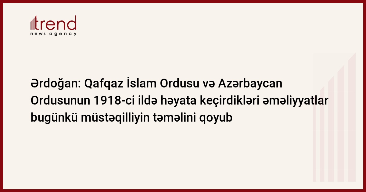 Trend-in məlumatına görə, bunu Türkiyə Prezident Rəcəb Tayyib Ərdoğan Bakı şəhərinin daşnak-bolşevik işğalından azad edilməsinin 100 illiyinə həsr olunmuş paradda çıxışı zamanı bildirib.