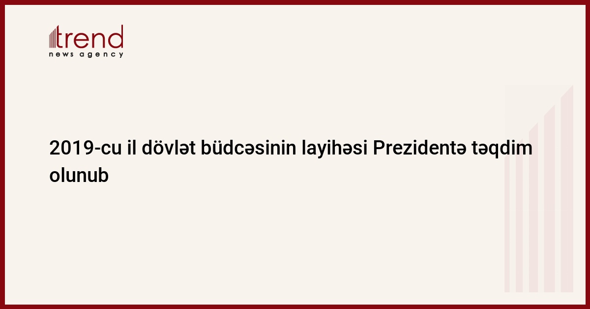 Azərbaycan Respublikasının 2019-cu il üzrə dövlət büdcəsinin və icmal büdcənin layihələri Prezidentə təqdim olunub.