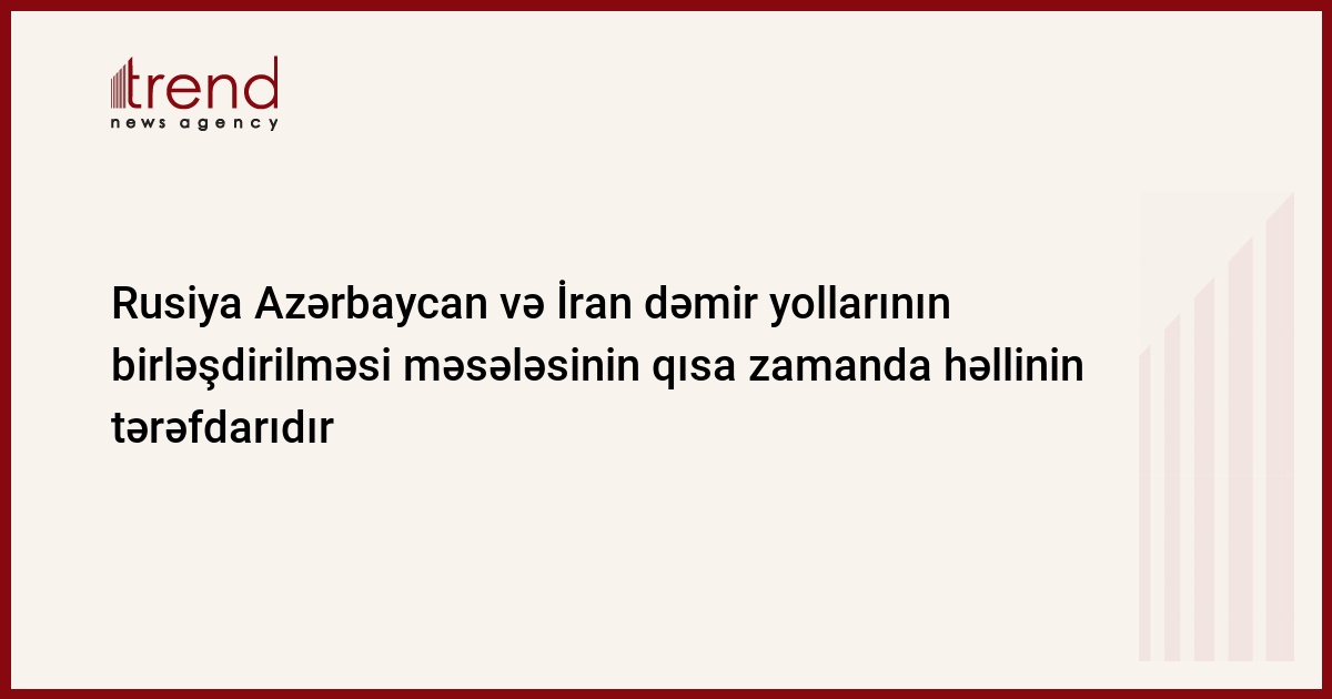Rusiya hökuməti "Şimal-Cənub" nəqliyyat dəhlizi ilə yük daşımalarının artırılması üçün Azərbaycan və İran dəmir yollarının birləşdirilməsi məsələsini mümkün qədər qısa zamanda həll etməyə çağırıb.