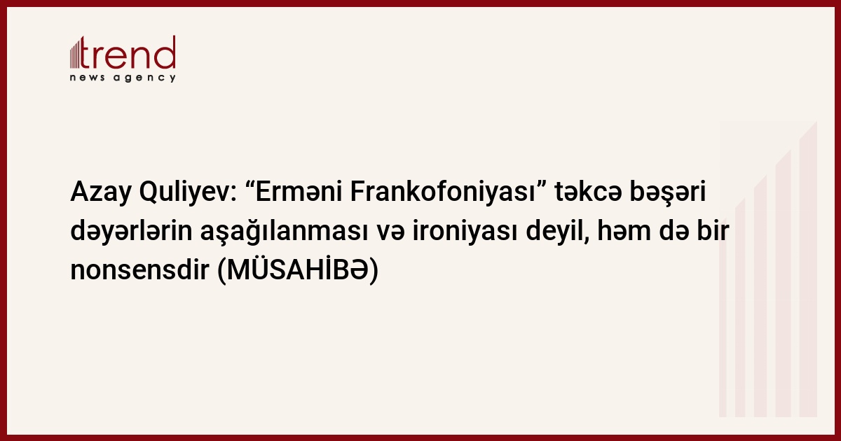 Milli Məclisin deputatı, ATƏT PA-nın vitse-prezidenti Azay Quliyevin 11-12 oktyabr tarixlərdə İrəvanda keçirilmiş 17-ci Frankofoniya sammiti ilə bağlı Trend-ə müsahibəsi
