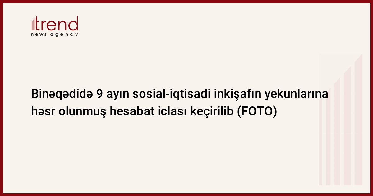 19 oktyabr 2018-ci il tarixində Yeni Azərbaycan Partiyası Binəqədi Rayon Təşkilatının inzibati binasının akt zalında Binəqədi rayonunun 2018-ci ilin 9 ayının sosial-iqtisadi inkişafın yekunlarına və qarşıda duran vəzifələrə həsr olunmuş hesabat iclası keçirilib.