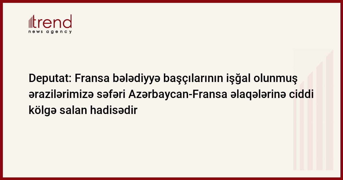 Fransadan olan bələdiyyə başçılarının işğal olunmuş ərazilərimizə qanunsuz səfəri Azərbaycan-Fransa münasibətlərinə ciddi kölgə salan hadisədir.