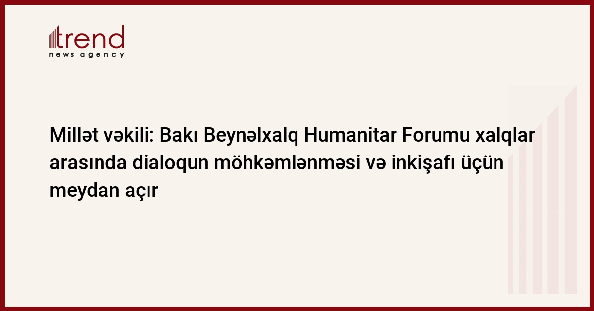 VI Bakı Beynəlxalq Humanitar Forumu xalqlar arasında dialoqun möhkəmlənməsi və inkişafı üçün yeni ideyalar, fikir mübadiləsi və qarşılıqlı etimadın yaranmasına meydan açır. Bunu Trend-ə Milli Məclisin deputatı Aydın Hüseynov deyib.
