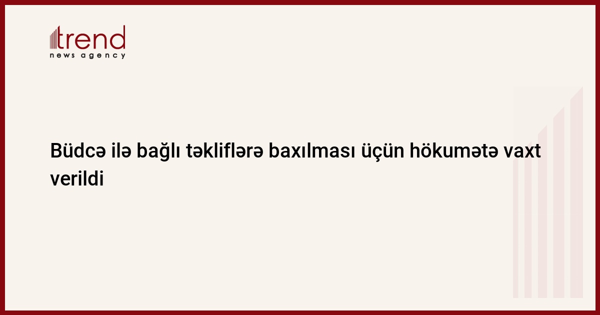 Milli Məclis 2019-cu ilin dövlət büdcəsi ilə bağlı müzakirələrdə səsləndirilən təkliflərə baxılması üçün hökumətə noyabrın 23-ə qədər vaxt verib. Trend-in məlumatına görə, bunu Milli Məclisin spikeri Oqtay Əsədov deyib.
