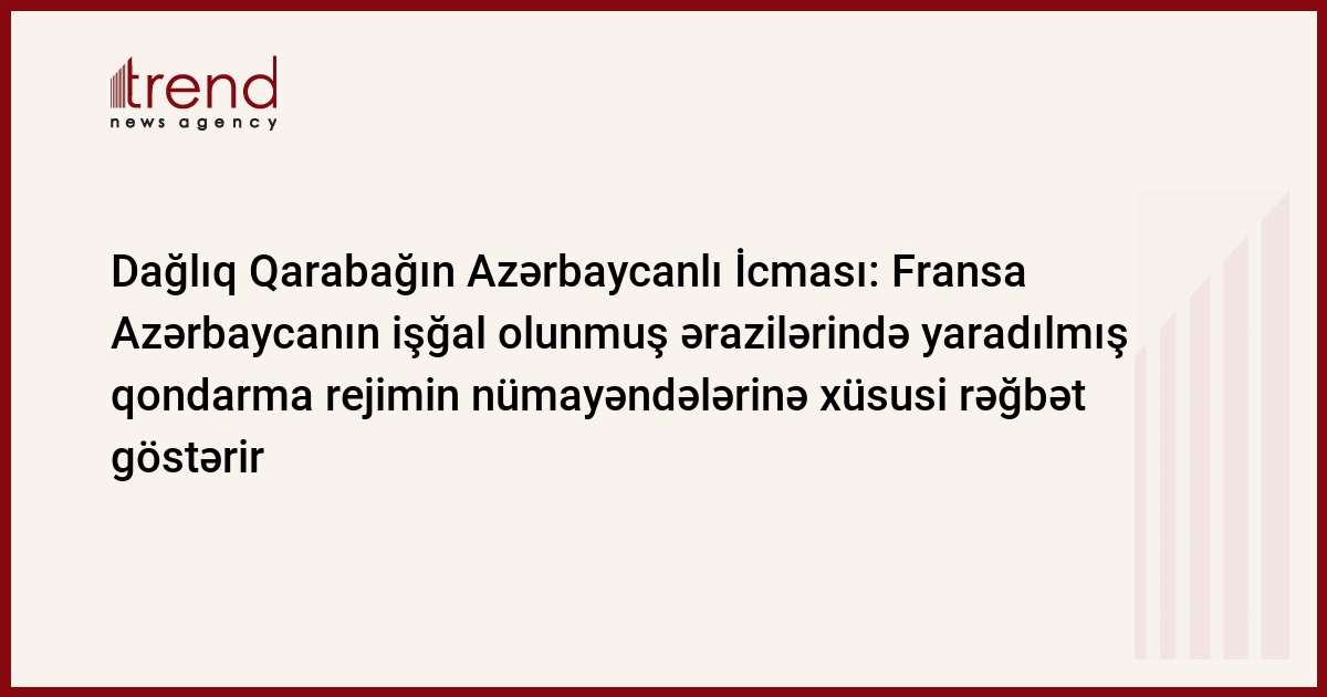 Trend-in məlumatına görə, bəyanatda deyilir: "Azərbaycan Respublikası Dağlıq Qarabağ bölgəsinin Azərbaycanlı İcması olaraq, Ermənistan silahlı qüvvələri tərəfindən Azərbaycanın işğal edilmiş ərazilərində yaradılmış qanunsuz rejimin təmsilçisi kimi özünü təqdim edən Bako Saakyanın Fransaya səfərini kəskin şəkildə pisləyir və hiddətimizi ifadə edirik".