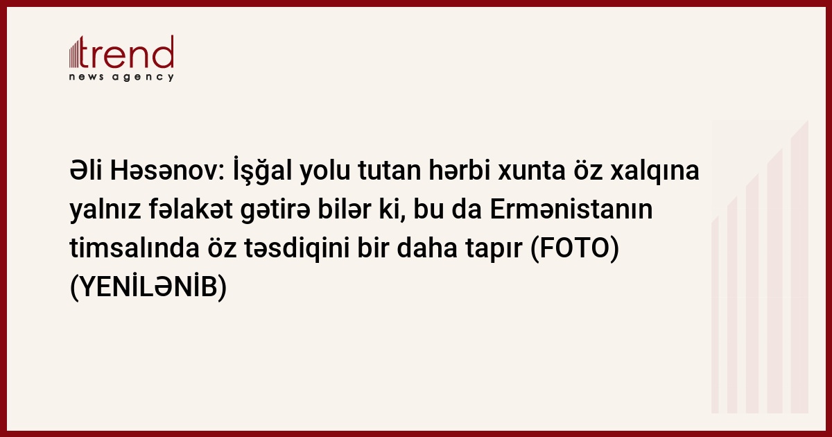 Əli Həsənov diqqətə çatdırıb ki, Dağlıq Qarabağ münaqişəsi bu gün yalnız Cənubi Qafqazdakı kövrək sülhü deyil, bütün Avropanın və dünyanın təhlükəsizliyini təhdid edir. Bunun kökündə beynəlxalq hüquqa, digər ölkələrin ərazi bütövlüyünə, səmavi dinlərin sülh çağırışlarına məhəl qoymamaq, böyüklük maniyası, dənizdən-dənizə ərazilərə sahiblənmək iddiası, bu iddianı reallaşdırmaq naminə hər cür saxtakarlığa və bəşəri cinayətə yol vermək amili durur.