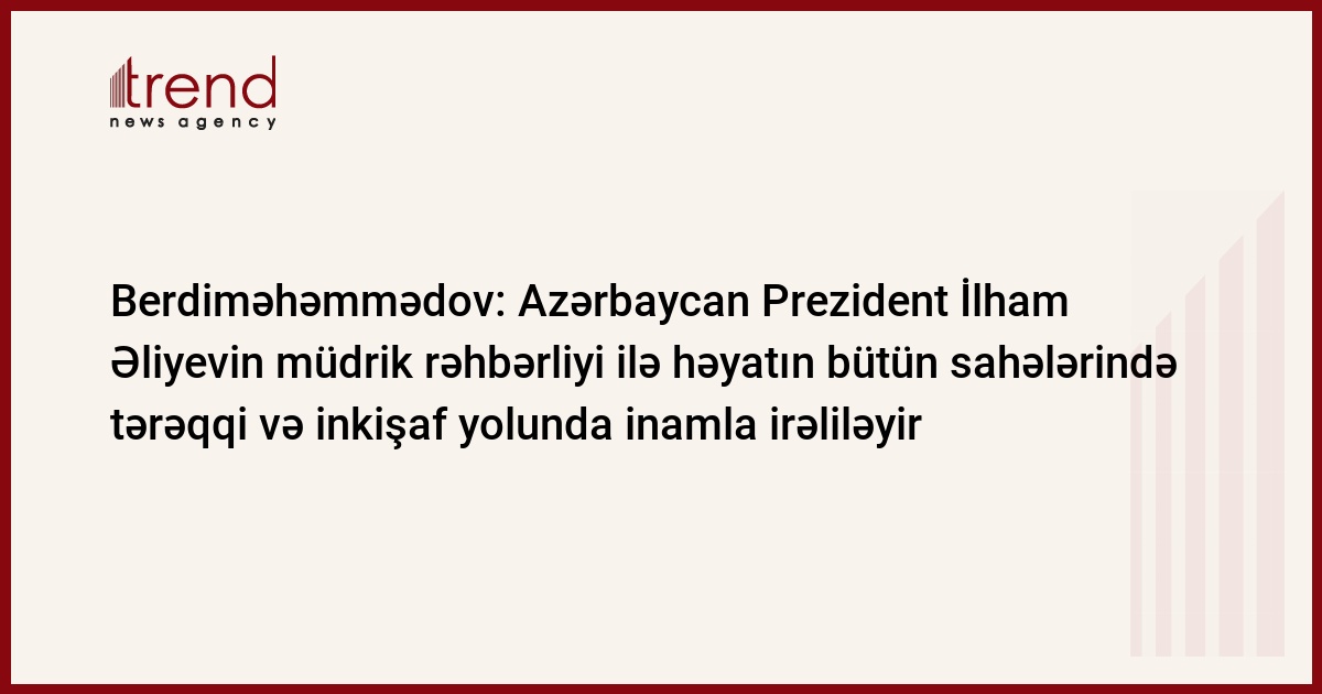 Böyük məmnuniyyətlə vurğulamaq istəyirəm ki, hazırda Türkmənistan ilə Azərbaycan Respublikası arasında münasibətlər yeni məzmun kəsb etməkdədir. Bu yaxınlarda Sizin Türkmənistana rəsmi səfəriniz qardaş xalqlarımız arasında dostluq tellərinin möhkəmlənməsi, ölkələrimizin müxtəlif sahələrdə əməkdaşlığının dərinləşməsi yolunda mühüm mərhələ oldu. Qəti əminəm ki, bizim birgə səylərimizlə Türkmənistan-Azərbaycan qarşılıqlı əlaqələri xalqlarımızın rifahı naminə bundan sonra da inkişaf edəcəkdir.