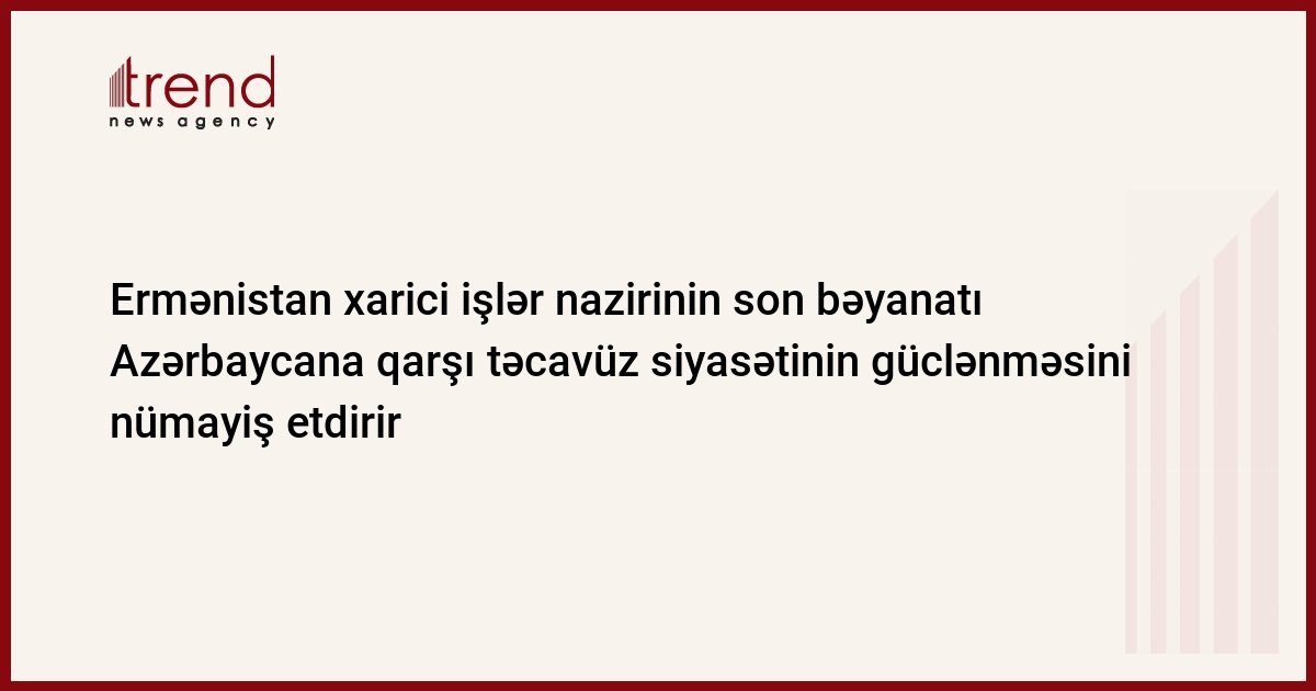 Ötən ilin 30 dekabr tarixində Ermənistan xarici işlər nazirinin ölkəsinin cənub-qərbindəki hərbi hissələrindən birinə baş çəkərək söylədiyi “Biz diplomatların işi sizin qələbənizi davam etdirmək və Ermənistanın, Artsaxın və xalqımızın maraqlarını əks etdirəcək sülhü möhkəmləndirməkdir. ...Ermənistan silahlı qüvvələri Ermənistan və Artsaxın təhlükəsizliyini təmin etmək iradəsinə və qətiyyətinə sahibdir” fikri Ermənistanın Azərbaycana qarşı təcavüzünü və 25 ildən artıqdır Azərbaycan ərazilərini işğal altında saxladığını aşkar şəkildə nümayiş etdirir. Bu illər ərzində beynəlxalq vasitəçilərin səyləri ilə münaqişənin tənzimlənməsi üzrə aparılan danışıqlar prosesi çərçivəsində Azərbaycanın konstruktiv yanaşmasına rəğmən Ermənistan rəhbərliyinin gücdən istifadə etməklə qonşu ölkənin işğal etdikləri ərazilərində təhlükəsizliyin möhkəmləndirilməsindən bəhs etməsi işğalçı siyasətə haqq qazandırmaq və işğalın nəticələrini möhkəmləndirmək niyyətinin göstəricisidir.