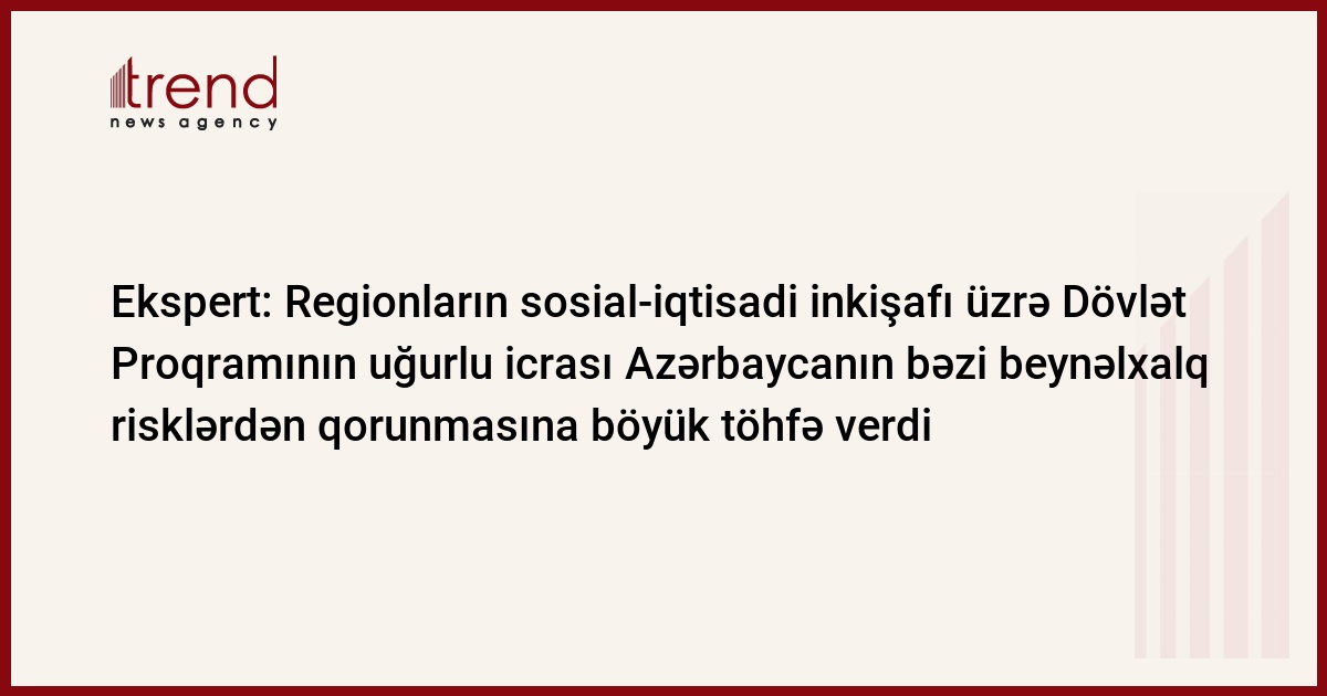 Baş redaktorun sözlərinə görə, Dövlət Proqramının uğurla icrasının mühüm nəticələrindən biri də odur ki, Azərbaycanın bəzi beynəlxalq risklərdən qorunmasına öz böyük töhfələrini verə bildi: