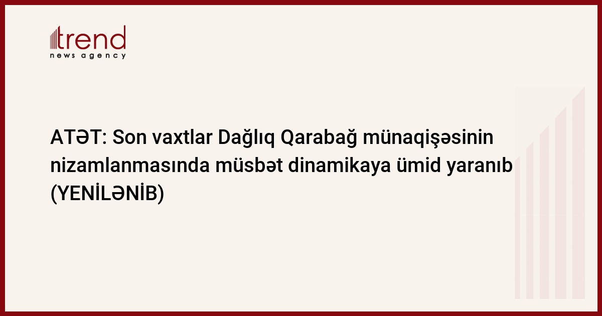 Son vaxtlar Dağlıq Qarabağ münaqişəsinin nizamlanmasında müsbət dinamikaya ümid yaranıb.