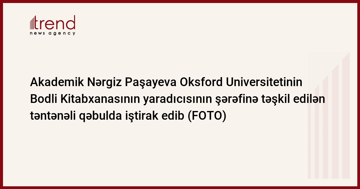 M.V.Lomonosov adına Moskva Dövlət Universitetinin (MDU) Bakı filialının rektoru, akademik Nərgiz Paşayeva martın 15-də Oksford Universitetinin Bodli kitabxanasının rəhbəri Riçard Ovendenin dəvəti ilə Bodli kitabxanasının yaradıcısı Ser Tomas Bodlinin şərəfinə universitetin ali akademik heyəti və fəxri qonaqları üçün təşkil edilmiş 31-ci təntənəli tədbirdə iştirak edib. https://www.bodleian.ox.ac.uk/ ).