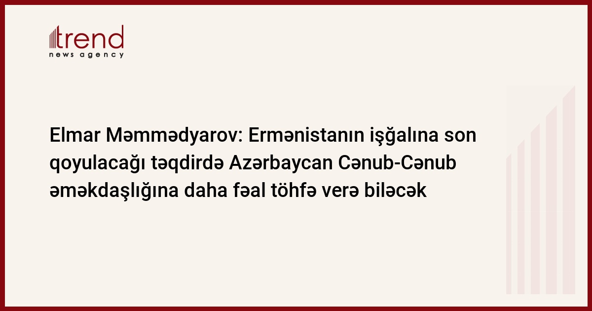 Ermənistanın hərbi işğalına son qoyulacağı təqdirdə Azərbaycan Cənub-Cənub əməkdaşlığına daha fəal töhfə verə biləcək.