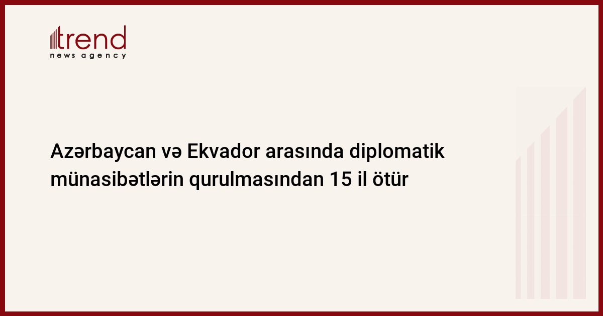 Xatırladaq ki, Azərbaycanla Ekvador arasında diplomatik münasibətlər 22 mart 2004-cü ildə qurulub.