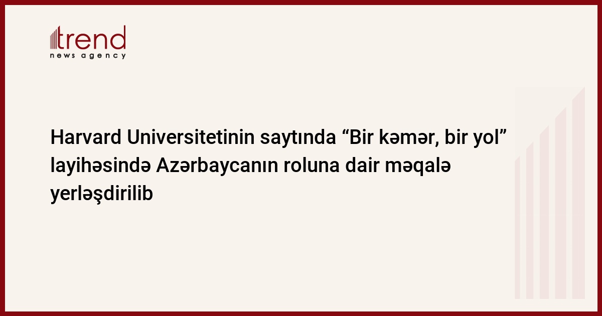 ABŞ-ın Harvard Universitetinin rəsmi saytında Azərbaycanın Ukraynadakı səfiri Azər Xudiyevin müəllifi olduğu ““Bir kəmər, bir yol” layihəsi çərçivəsində Azərbaycanın Xəzər və Qara dəniz hövzələri ölkələri ilə əməkdaşlığında rolu” sərlövhəli məqalə yerləşdirilib.