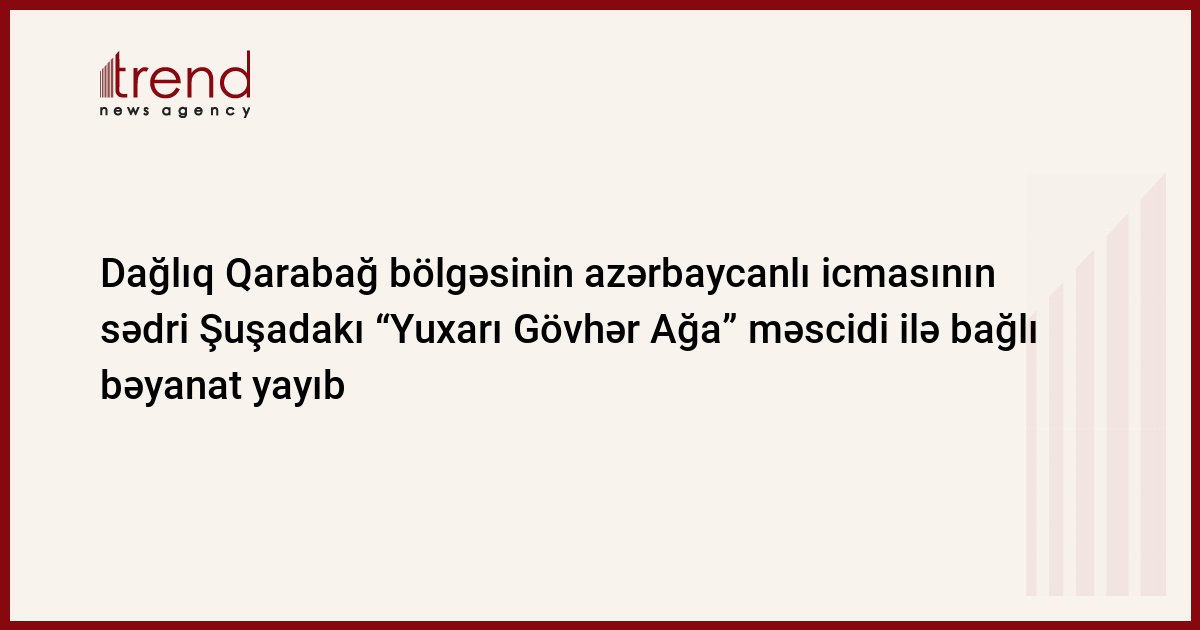 “Azərbaycan Respublikasının Dağlıq Qarabağ bölgəsinin azərbaycanlı icması” İctimai Birliyinin rəhbəri Tural Gəncəliyev Şuşadakı “Yuxarı Gövhər Ağa” məscidi ilə bağlı bəyanat verib.