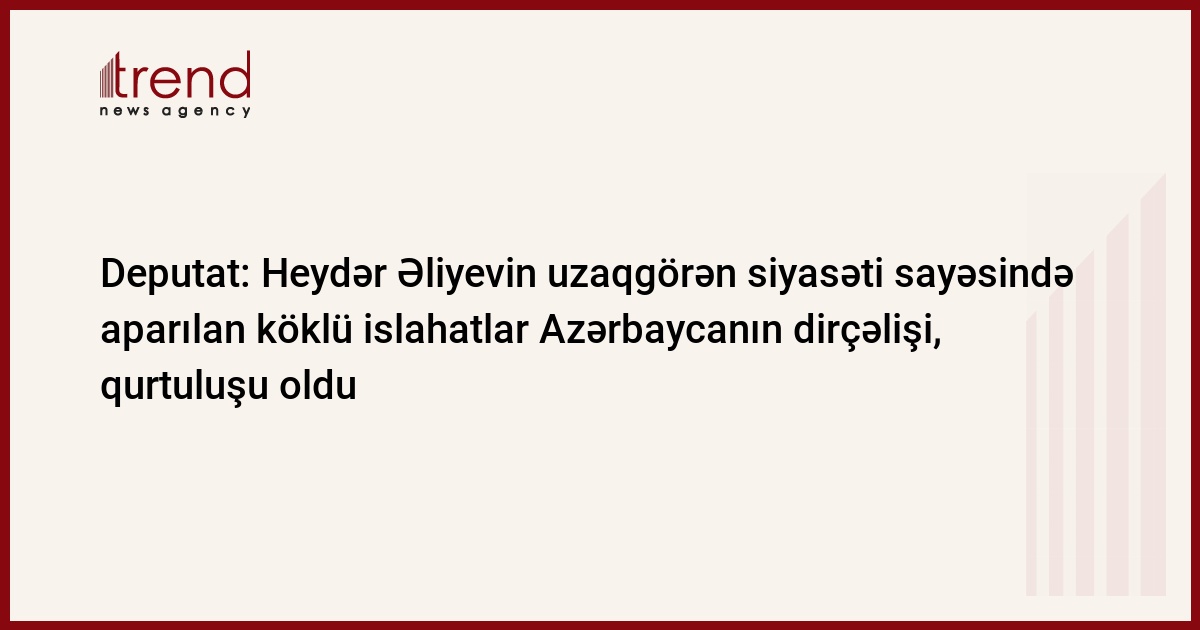 Deputat əlavə edib ki, son illər ulu öndərin uzaqgörən, məqsədyönlü siyasətinin layiqli davamçısı Prezident İlham Əliyevin rəhbərliyi sayəsində ölkənin bütün bölgələrində, şəhərdən, rayondan tutmuş ucqar dağ kəndlərinədək hər yerdə aparılan genişmiqyaslı quruculuq prosesləri müstəqil dövlətimizin hüsnünü daha da gözəlləşdirib: