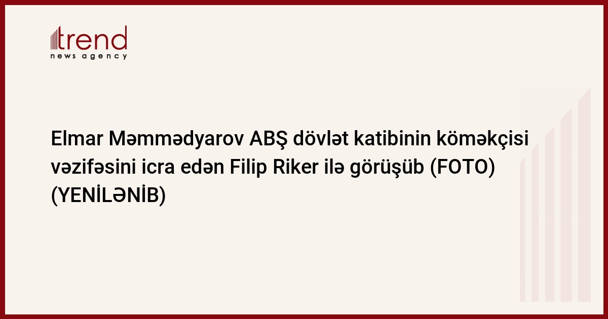 Vaşinqtona səfəri çərçivəsində Azərbaycan Respublikasının xarici işlər naziri Elmar Məmmədyarovun ABŞ dövlət Katibinin Avropa və Avrasiya məsələləri üzrə köməkçisi vəzifəsini icra edən Filip Riker ilə görüşü keçirilib.