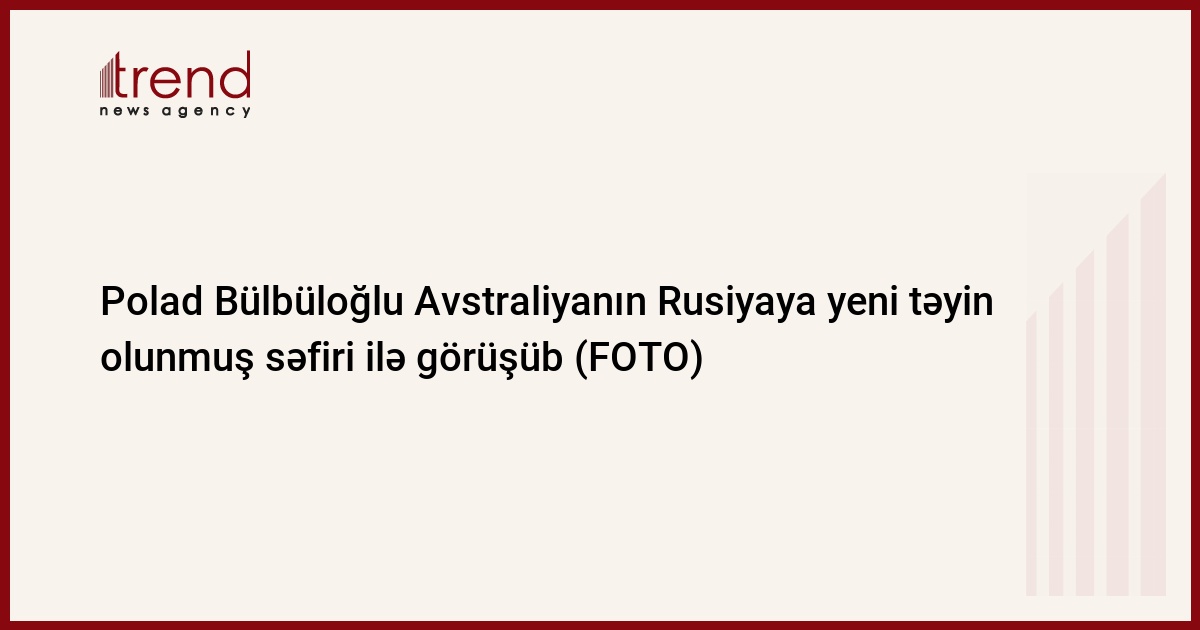 Səfirlikdən Trend-ə verilən məlumata görə, həmkarını Rusiyaya təyinatı ilə əlaqədar təbrik edən Azərbaycanın Rusiyadakı Səfiri ona diplomatik fəaliyyətində müvəffəqiyyətlər arzulamışdır. Polad Bülbüloğlu Azərbaycan ilə Avstraliya arasında münasibətlərin yüksək səviyyədə olduğunu bildirmiş və dövlətlərarası əlaqələrin daha da inkişaf etdirilməsi üçün geniş potensialın mövcudluğunu vurğulayıb.