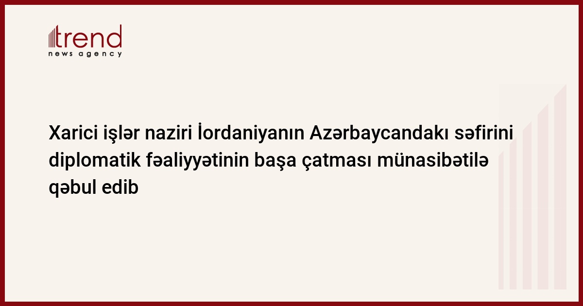 Xarici işlər naziri Elmar Məmmədyarov diplomatik fəaliyyətinin başa çatması münasibətilə İordaniya Haşimilər Krallığının Azərbaycandakı səfiri Nassar İbrahim Məhəmməd Əl-Habaşnehi qəbul etdi.