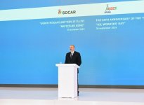 Bildiyiniz kimi, dünyada sənaye üsulu ilə ilk neft məhz Azərbaycanda hasil edilmişdir. Bu gün şəhərimizin mərkəzində dünyanın ilk neft quyusu bir turizm obyekti kimi fəaliyyət göstərir. O gündən bu günə qədər Azərbaycanda böyük həcmdə neft hasil edilmişdir. Bildiyiniz kimi, dəniz yataqlarından da dünya miqyasında ilk neft Azərbaycanda hasil edilmişdir və bu gün biz Azərbaycan neft sənayesinin yeni mərhələsinin şahidiyik.