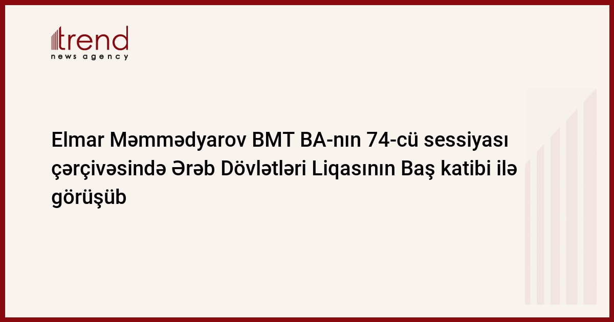 Elmar Məmmədyarov BMT BA-nın 74-cü sessiyası çərçivəsində Ərəb Dövlətləri Liqasının (ƏDL) Baş katibi Əhməd Abul Qeyt ilə görüşüb.