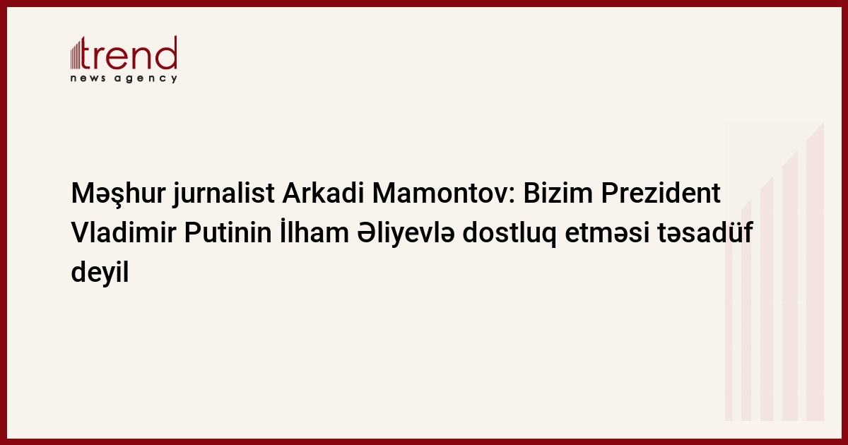 Trend-in məlumatına görə, Rusiya Televiziya Akademiyasının üzvü, Rusiyanın ən məşhur jurnalistlərindən biri, televiziya aparıcısı və bir çox sənədli filmin müəllifi Arkadi Mamontov bu mövzuda Azərbaycan mediasına danışıb.