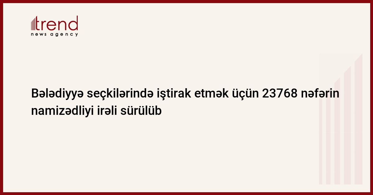 Bu il dekabrın 23-də Azərbaycanda keçiriləcək bələdiyyə seçkilərində iştirak etmək üçün 23768 nəfər namizədliyinin irəli sürülməsi ilə bağlı dairə seçki komissiyalarına müraciət edib.