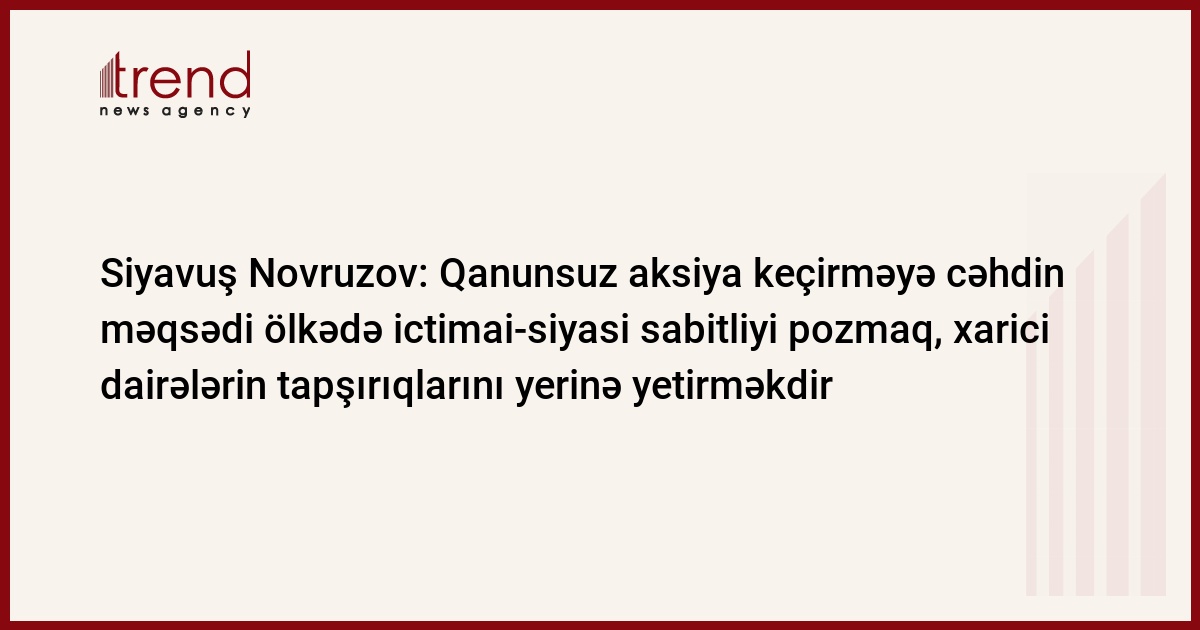 Müsavat Partiyasının Bakı Şəhər İcra Hakmiyyəti qarşısında qanunsuz aksiya keçirməyə cəhd etməsinin məqsədi ölkədə ictimai-siyasi sabitliyi pozmaq, xarici dairələrin tapşırıqlarını yerinə yetirməkdir.