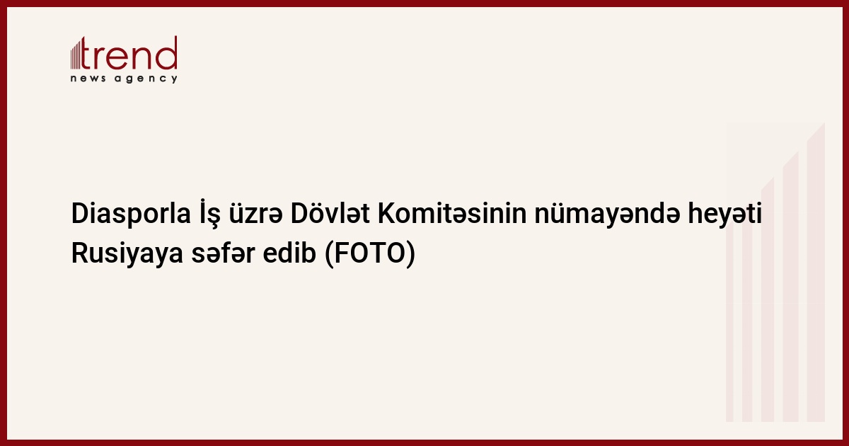 25-27 noyabr tarixlərində Azərbaycan Respublikasının Diasporla İş üzrə Dövlət Komitəsinin Sədri Fuad Muradovun başçılıq etdiyi nümayəndə heyətinin Rusiya Federasiyasına işgüzar səfəri baş tutub.